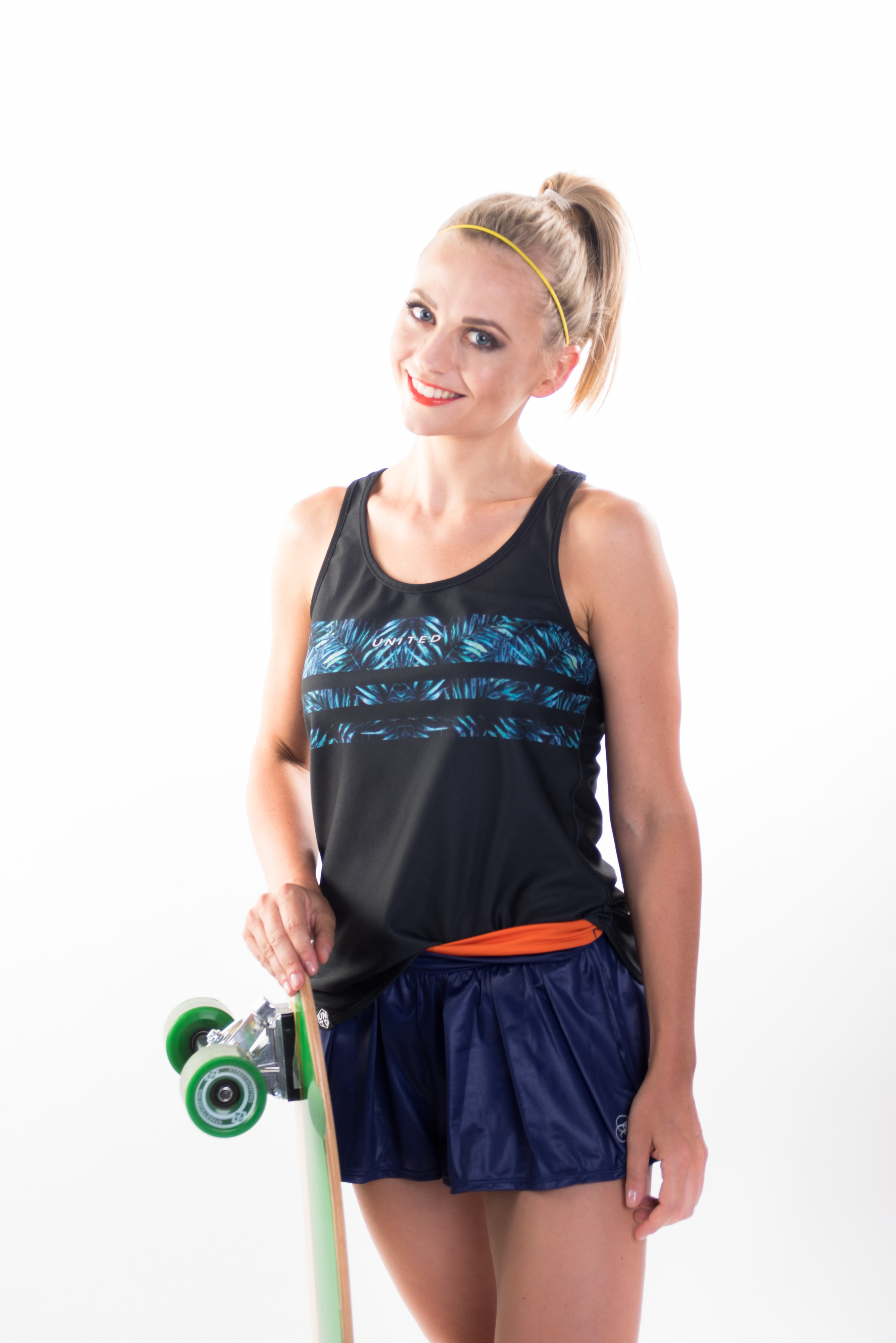 BLACK JUNGLE TANK TOP to tank top w kobiecym fasonie z mocno wyciętymi plecami. Wykonany jest z dzianiny technicznej – sportowej, która pozwala Twojej skórze oddychać, a także skutecznie odprowadza wilgoć.